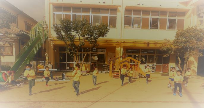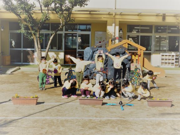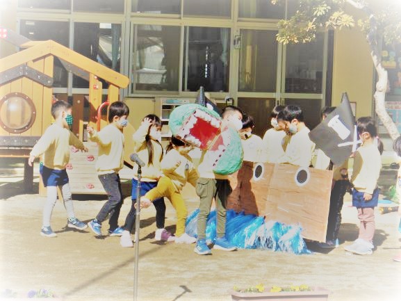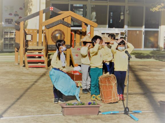 子どもたちは、園庭で毎日劇遊びを楽しんでいます。
