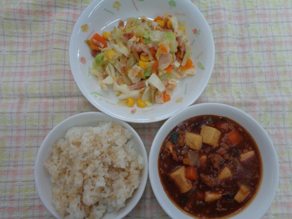 9月14日献立2020.09.14 アーカイブ *メニュー* 麻婆豆腐 ベーコンとキャベツの炒め物 *おやつ* パンチップス 2歳児さんが、「麻婆豆腐が、甘い。」と言いながら、たくさん食べていました。楽しく食事をしながら、食に関心を持ってもらえると嬉しいです。 以上児見本 おやつ見本 投稿ナビゲーション