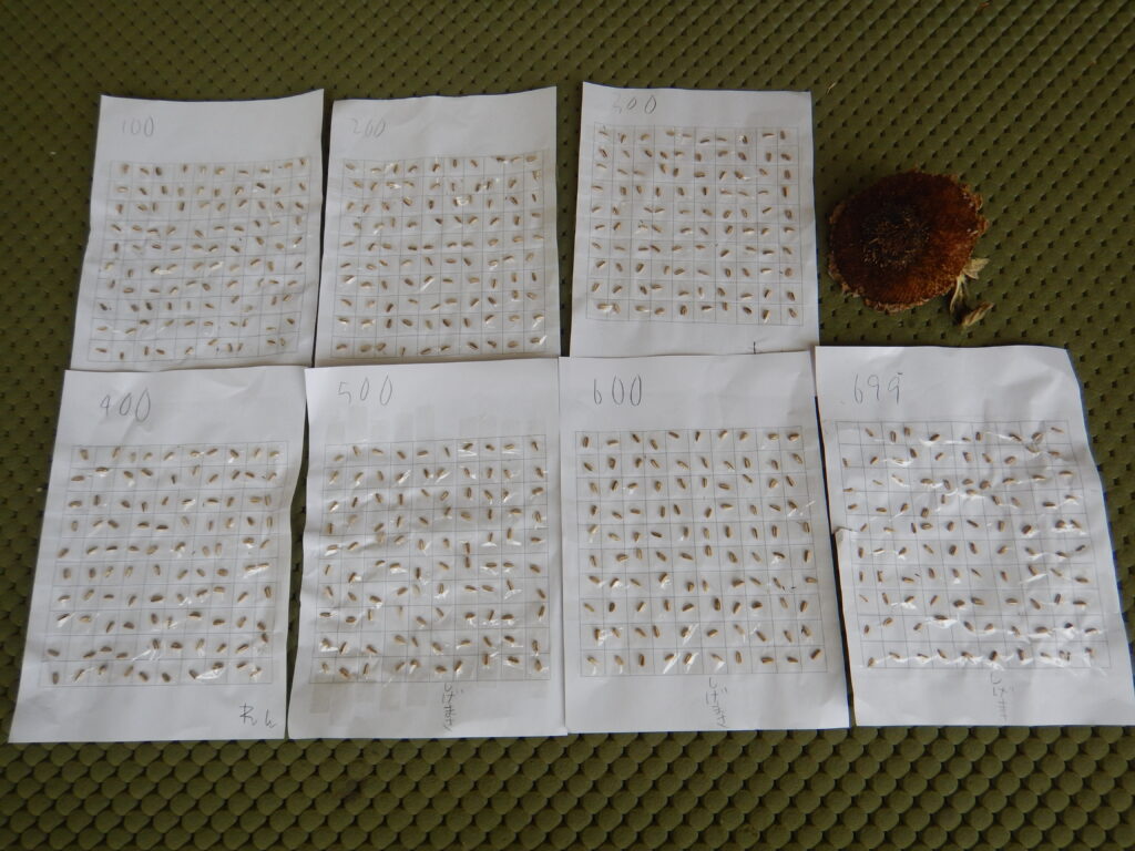 ひまわりのたね2020.09.17 アーカイブ 畑で元気よく咲いていたひまわりの花が種になりました。 たくさんの種がぎっしり並んでいるのを見て、何個あるのかな?と 気になった子どもたちが根気よく数えていました。 1つの花に699個もの種が入っていたそうです。 投稿ナビゲーション