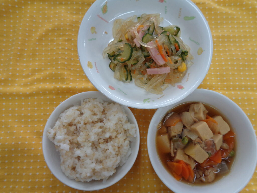 9月24日献立2020.09.24 アーカイブ *メニュー* 高野豆腐と野菜の煮物 春雨サラダ *おやつ* リンゴゼリー 野菜がたくさんとれるメニューでどのクラスもしっかりと食べていました。洗い物をするときにきれいになって帰ってくる食缶を見るととてもうれしいです。 以上児見本 おやつ見本 投稿ナビゲーション