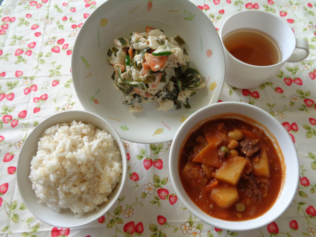 今日のサラダの昆布はコリコリと噛み応えがあり、きゅうりのカリカリ食感との違いを食事をしながら楽しく感じることができたと思います。子ども達に給食の感想を聞いてみてください☆