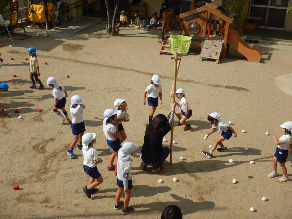 園庭では、子どもたちが青空の下で元気いっぱい楽しんでいます。