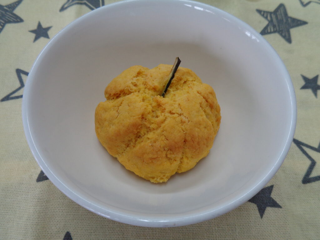 おやつのスコーンはかぼちゃの形に見立てて作りました。