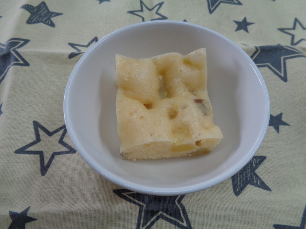 今日のおやつのさつまいも蒸しパンには、子ども達が収穫したさつまいもを使用しました。