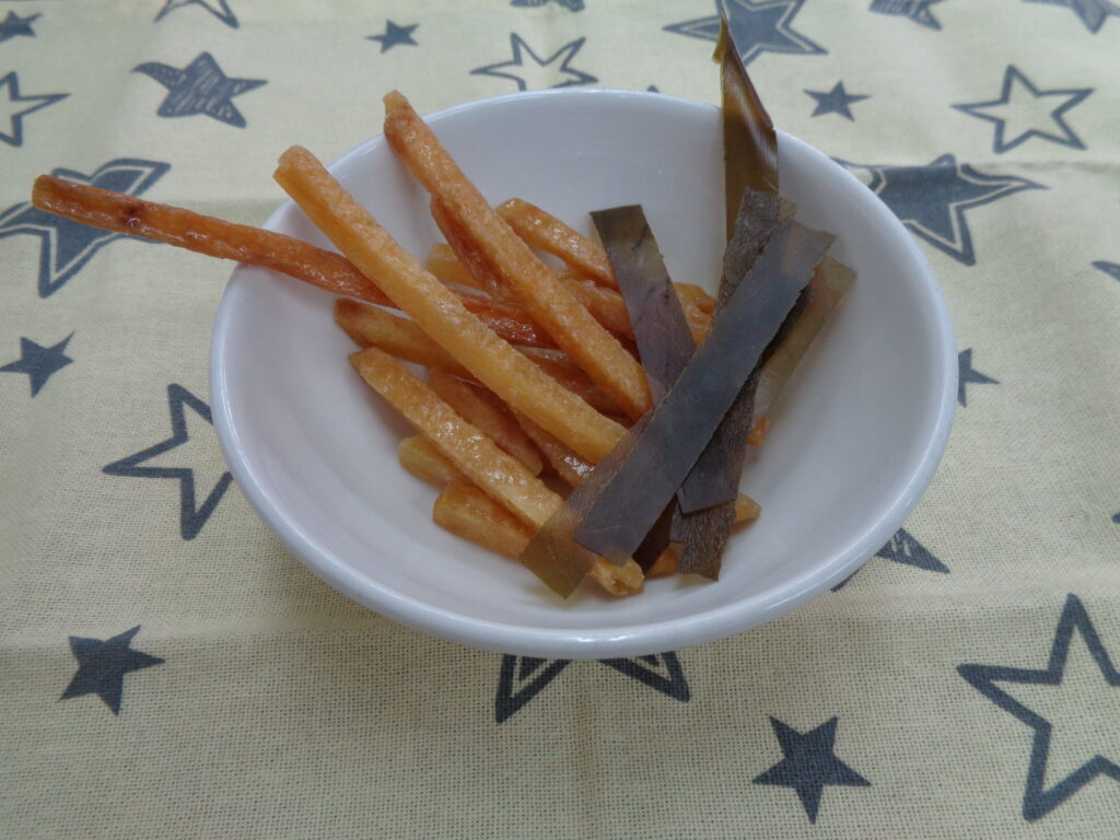 筑前煮は、れんこん、ゴボウ、ニンジン、大根、さやいんげん、干し椎茸、鶏肉が入っていてたくさん野菜のとれるメニューになっています。食材がたくさんなので量もたくさんできましたがどのクラスの子ども達もしっかりと食べてくれていました。