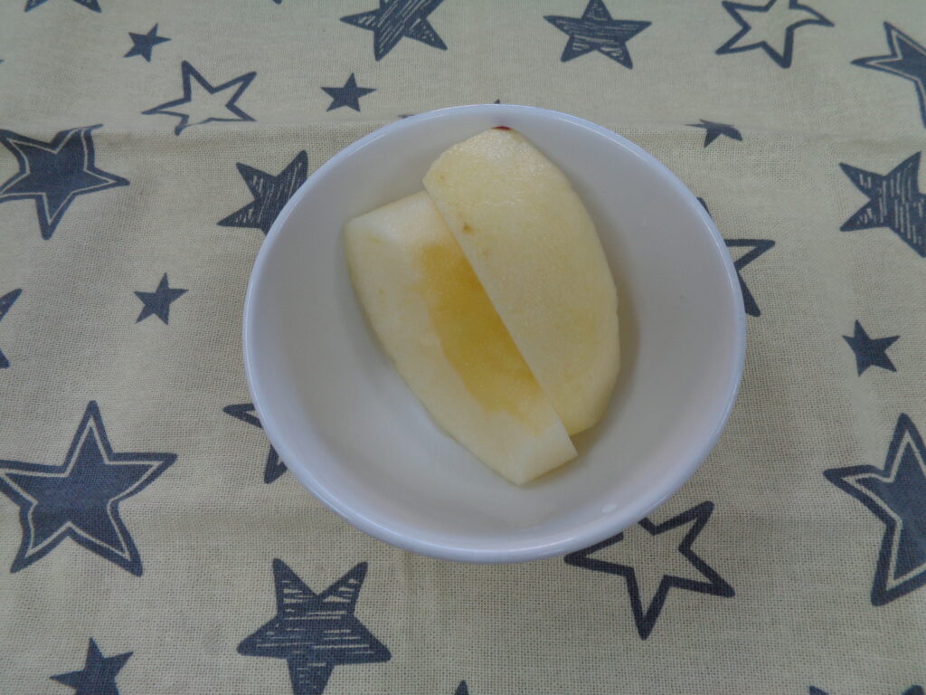 今日のメニューは、寒くなってきたこの時期に体も温まり野菜のたくさんとれる肉じゃがです。味見当番は、ベーコンとキャベツの炒め物で「キャベツがシャキシャキしてる。」「トウモロコシの味がした。」などしっかりと発表をしてくれています。