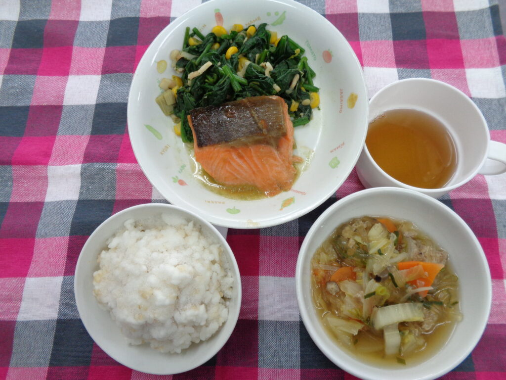 今日のスープは手作り肉団子入りでした。三人がかりでスープに中に肉団子を丸めながら入れたきました。思ったよりも時間がかかってしまいましたが、給食に間に合い良かったです。子ども達も美味しいと食べてくれて良かったです。