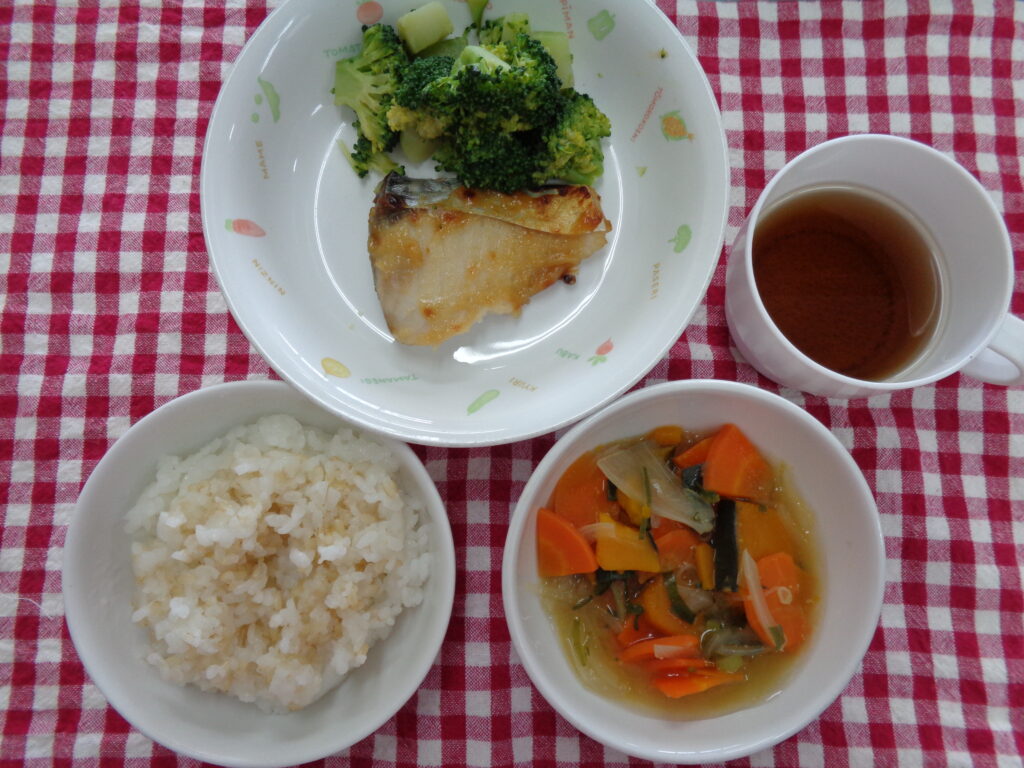 鰆はみそをつけて焼くことで身がしっとりして食べやすくなっています。みそも白みそに砂糖やみりんを混ぜて甘く食べやすい味付けにしているので子どもたちもよく食べてくれています。
