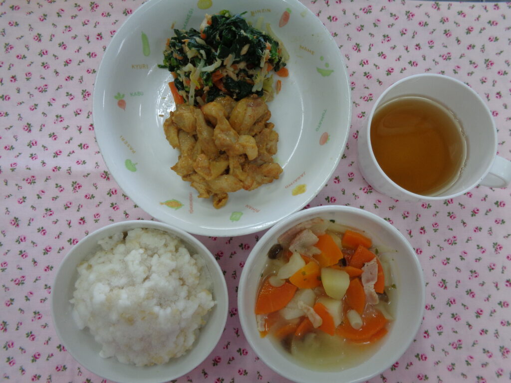 今日の献立は子どもたちにも人気だったようでどのクラスも残食がほとんどなく返ってきました。タンドリーチキンはカレーのいい香りがし食欲もわくようなメニューです。