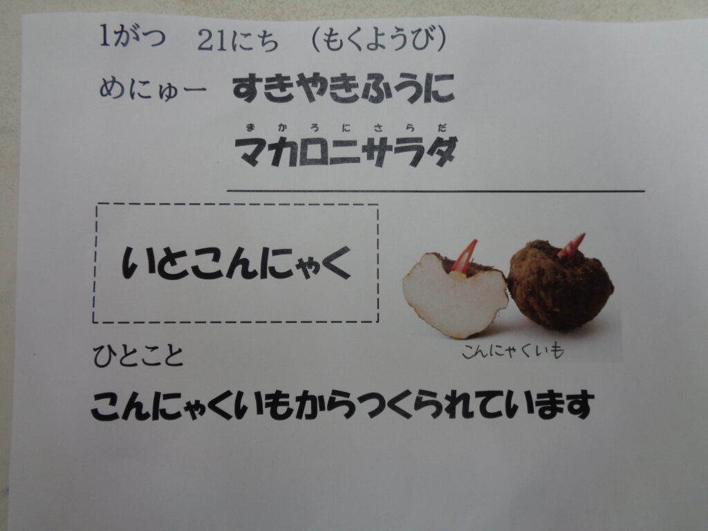 緊急事態宣言が行われた為、年長児が行っていた味見当番を残念ながらお休みしています。。その代わりと言ってはなんですが、各クラスに今日の献立に使った食材のひとことメモを配布しています。ブログにもアップしていくので、よろしければご覧ください。