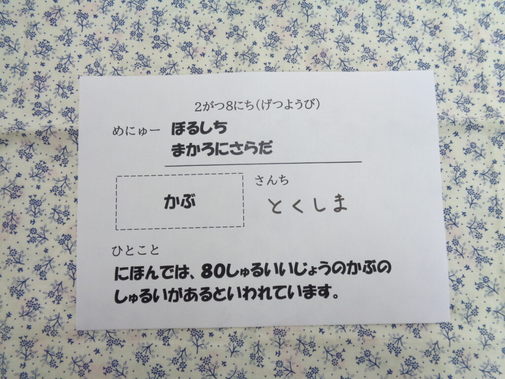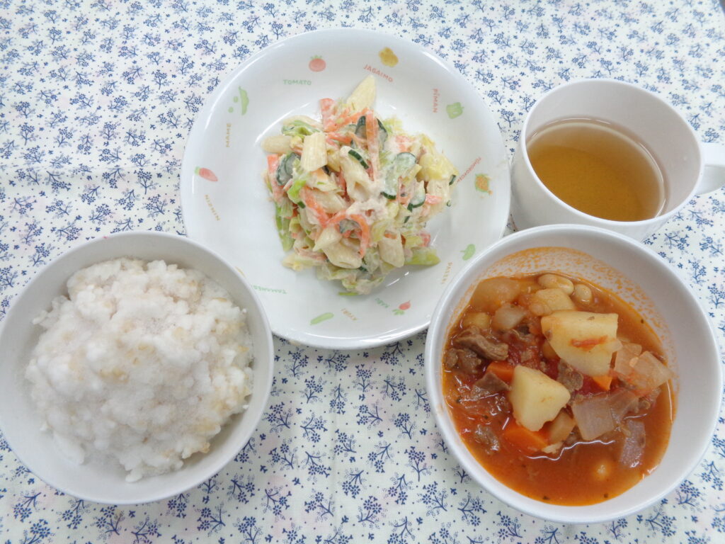 2月8日献立2021.02.08 アーカイブ *メニュー* ボルシチ マカロニサラダ *おやつ* いよかん いよかんの旬は1~2月です地方により、早いところでは11月下旬から収穫されています。代表的な産地は、伊予の国・愛媛県で全体の9割を出荷しているそうです。 以上児見本 おやつ見本 ひとことメモ 投稿ナビゲーション