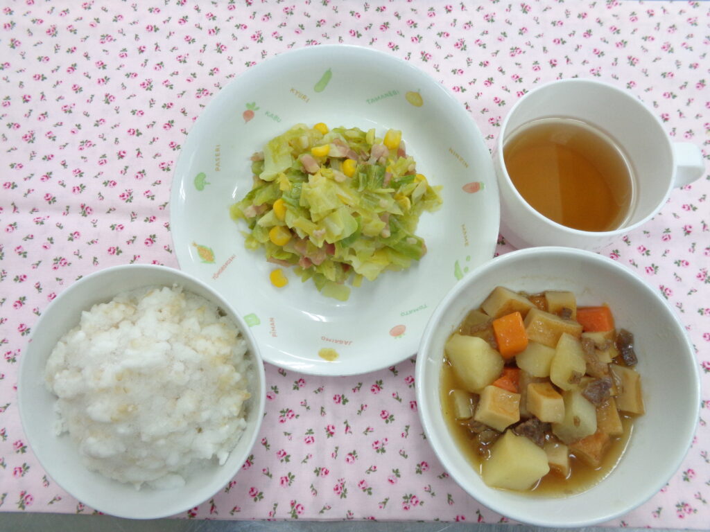 今日の、姫路風おでんは牛肉、ひら天、にんじん、こんにゃく、じゃがいも、だいこんのたくさんの具材をだし、さとう、しょうゆ、生姜で味を調えて煮込んでいます。今回もたくさん出来ましたが子ども達もよく食べてくれていて残食もほとんどなかったのでとても嬉しかったです。