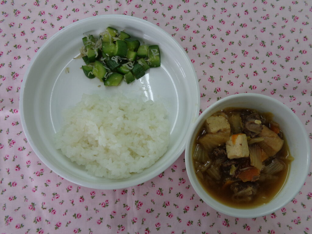 今日は3,4,5歳児の遠足だったので0,1,2歳児分だけの調理でした。