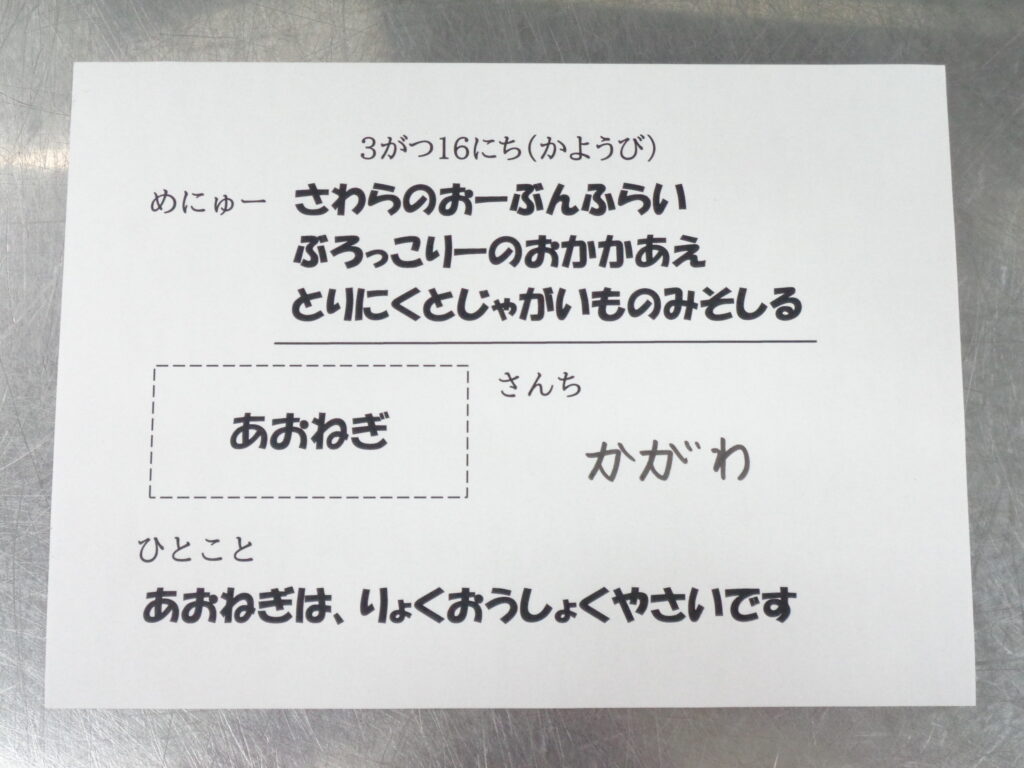 ブロッコリーは、11月から3月頃まで旬になります。今日の給食のおかか和えや他にも塩昆布、昆布茶、しらすなどのメニューがありますが子ども達はどのメニューもよく食べてくれています。また、ブロッコリーは芯の部分も栄養がたくさんあります。一口サイズに切りしっかりとゆでると食べやすくなります。