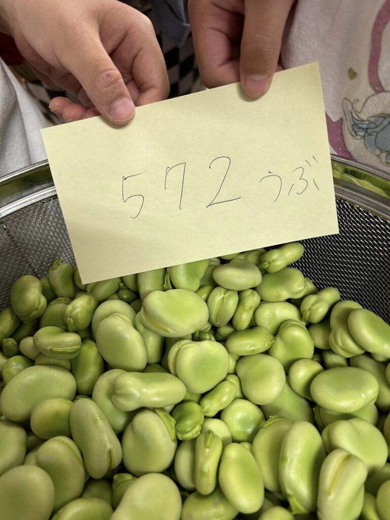 そら豆くんのふかふかベッドから豆を取り出すと、全部で572粒