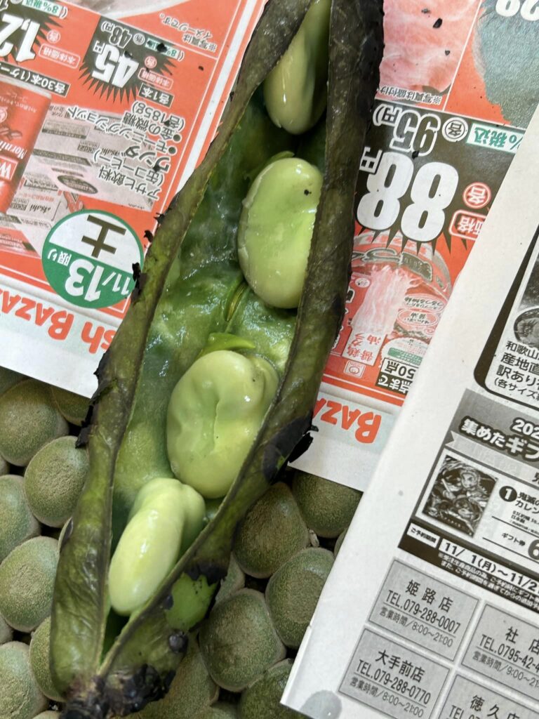茹でたのと味が違うらしく、鞘についた水分も舐めていました。
